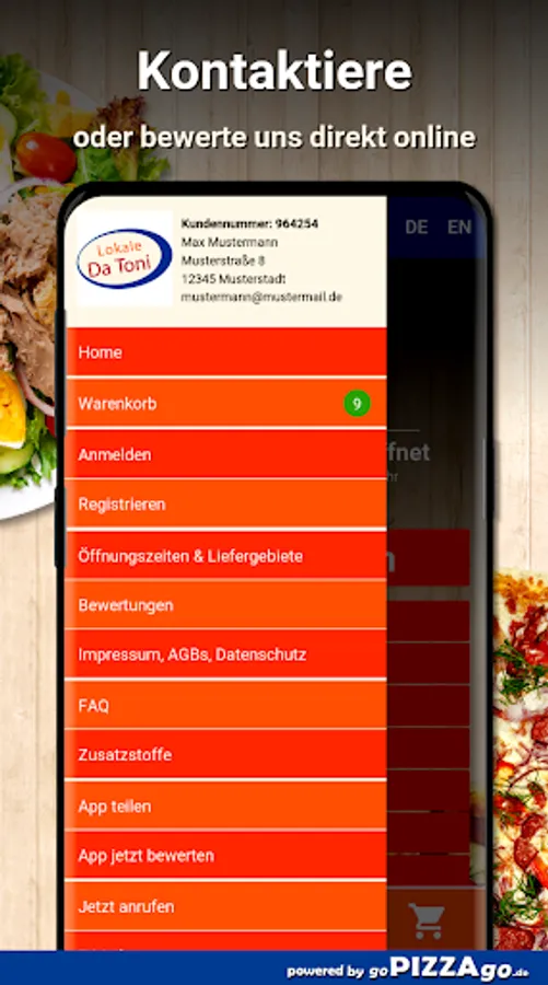 You can order freshly prepared dishes from the local Da Toni delivery service (Wittichstraße 3 in Darmstadt) and have them delivered to your home or perhaps your office. You can expect a selection of 216 delicious dishes (Pizza Chicken Lover, Bolognese Schnitzel, Pizza Sonu, Tandoori Wrap, Tikka Masala, Pizza Calzone Hack or Pizza Gambero for 9.50 euros) these times