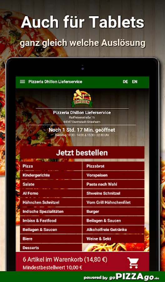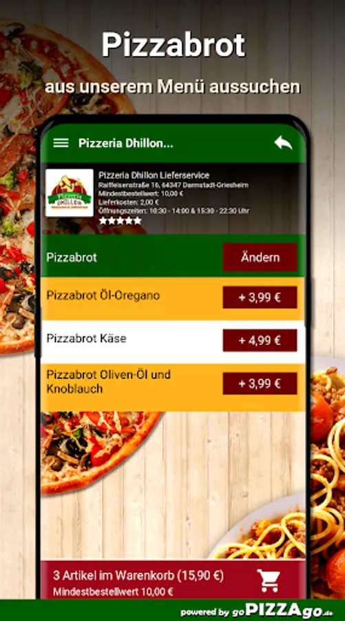 Longing for pizza from Pizzeria Dhillon Lieferservice Darmstadt-Griesheim?