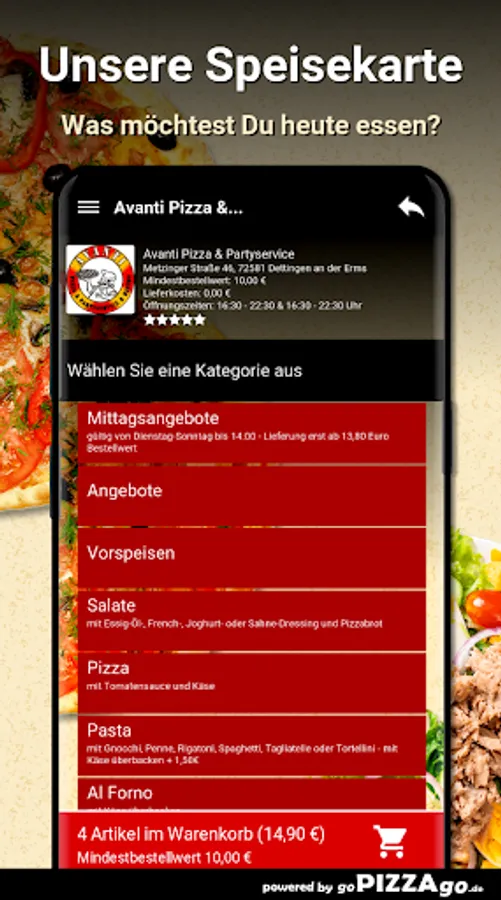 Avanti Pizza & Partyservice - your home service in Dettingen an der ErmsAvanti Pizza & Partyservice in Dettingen an der Erms ... Order delicious fish, schnitzel online.