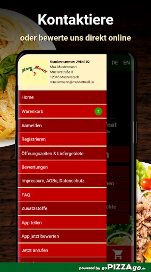 Of course, you can safely order a large number of dishes from us here in our online shop. Our offer includes more than 157 delicious dishes, Rumpsteak Italia, Pizza Mozzarella, Spaghetti Bolognese, Schnitzel Wiener-Art, Carrot Salad, Chicken Schnitzel Wiener-Art. We also deliver drinks to you. We have Coca-Cola light 1.0l, Sprite 1.0l, Coca-Cola 1.0l, Fanta 1.0l on offer. The seven most delicious dishes Our delivery times
