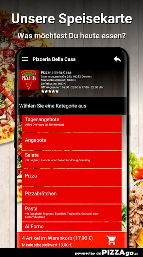 Pizzeria Bella Casa - Order food in DorstenWe also have: Al Forno, kebab, salads, burgers, pizza, pasta, pizza rolls to order & of course have them delivered as soon as possible!