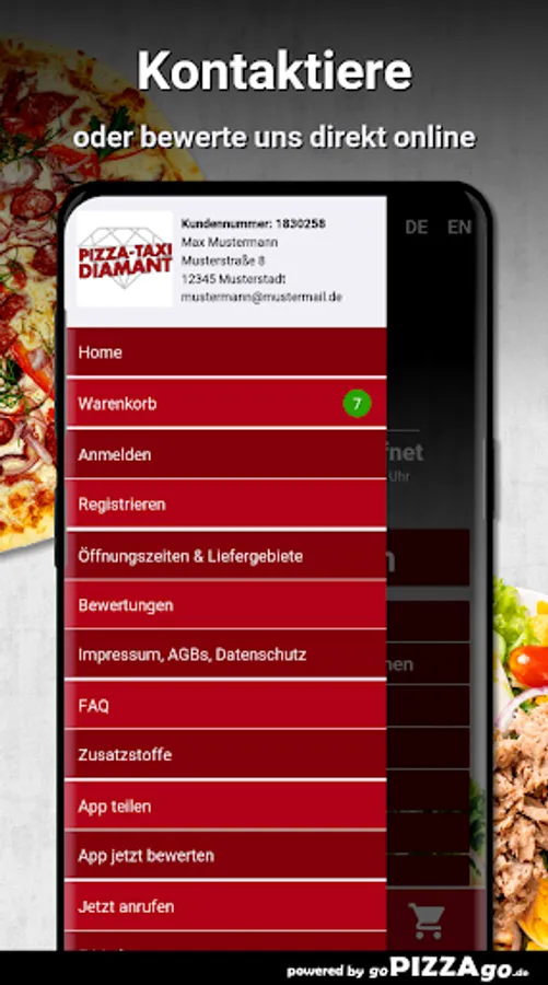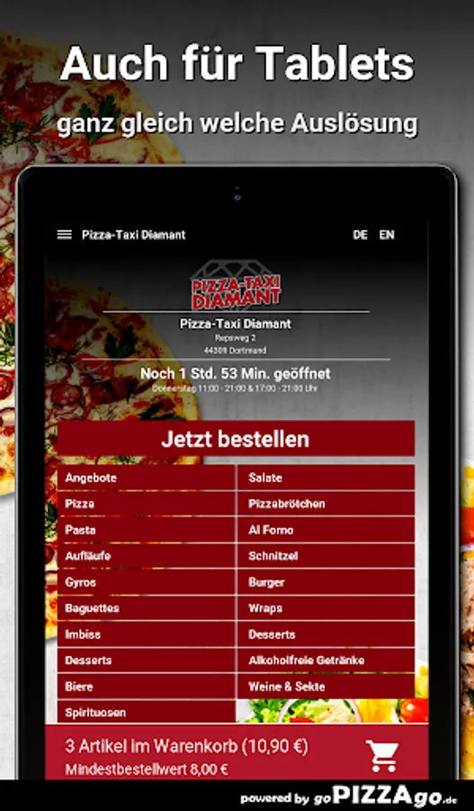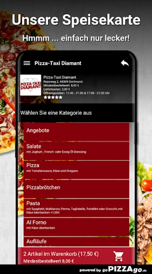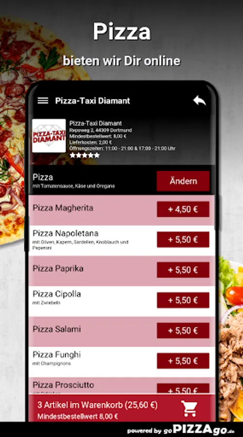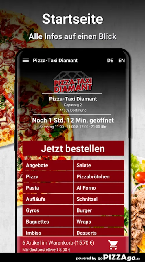 Hello & welcome to our pizza service Pizza-Taxi Diamant