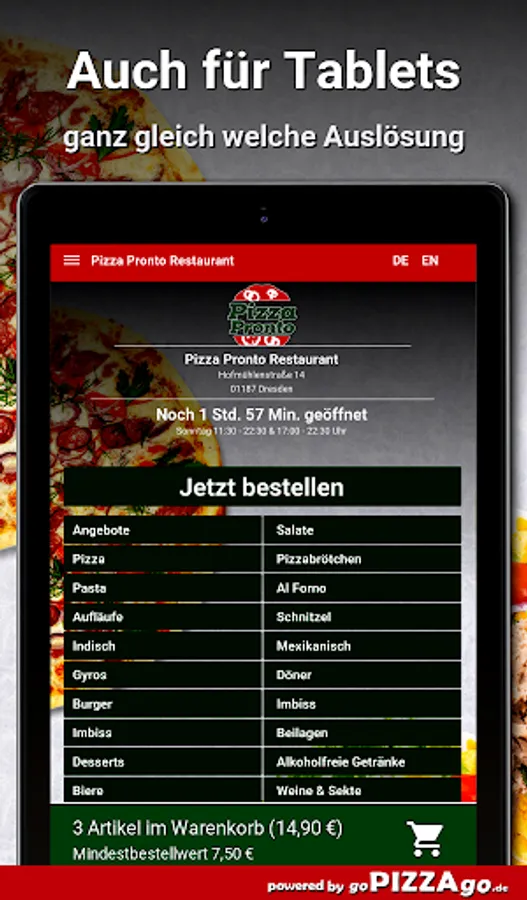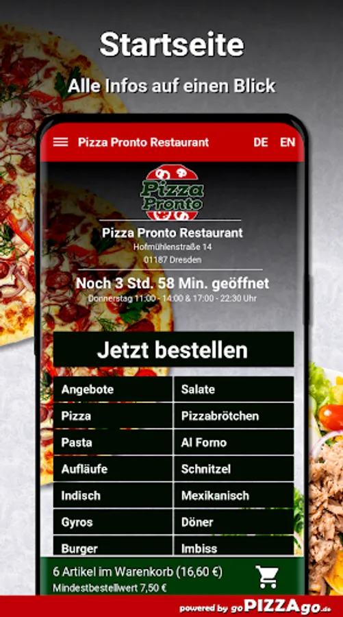 Welcome to Pizza Pronto Restaurant in DresdenYou fancy Mexican, casseroles, kebab, Al Forno, salads, pizza rolls to order online and have them delivered?