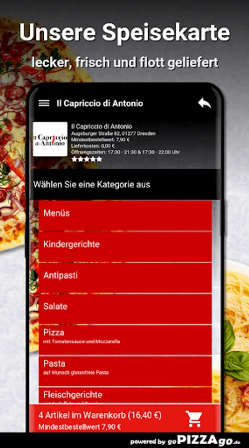 Welcome to Il Capriccio di Antonio in Dresden! Are you craving antipasti, pasta, pizza, meat dishes, salads to be safely ordered and delivered?
