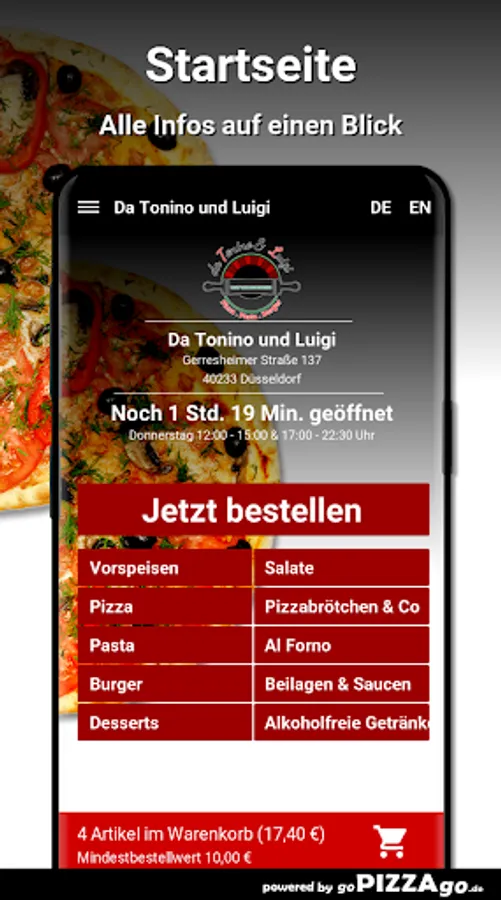 Da Tonino and Luigi in Düsseldorf - we deliver your food!Da Tonino and Luigi - order burgers, pizza online.