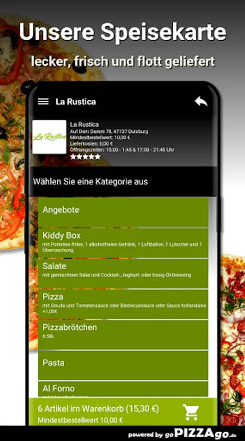 Welcome to La Rustica in Duisburg! We deliver fish, pizza, snacks, Al Forno, salads, casseroles, grilled dishes.