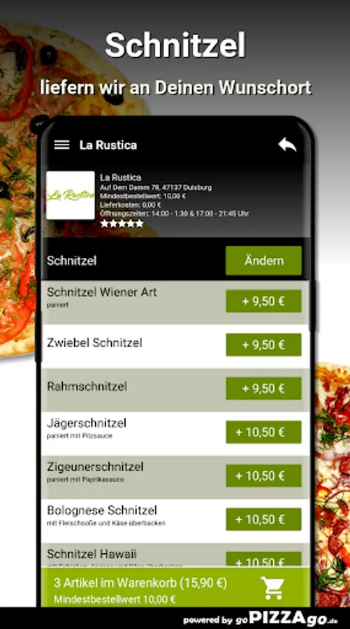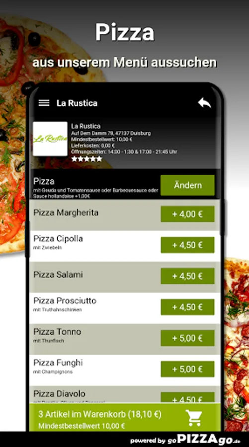 Of course you can order quickly and securely online in our online shop from a wide range of delicious dishes from the La Rustica delivery service (47137 Duisburg). We offer you a selection of over 201 delicious dishes. Our 7 top hits When can I order from La Rustica?