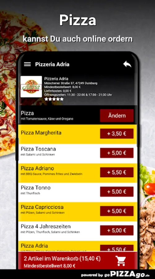 Order food online at Pizzeria Adria DuisburgPizzeria Adria - Al Forno, order from the grill online.