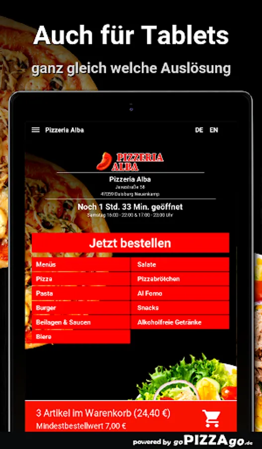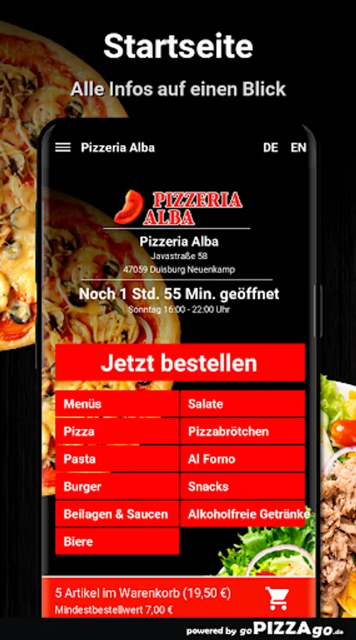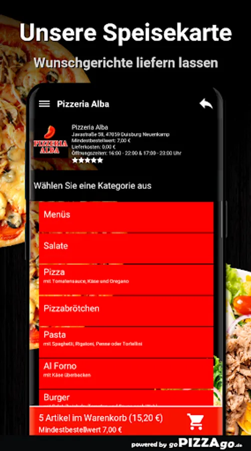 Order food online at Pizzeria Alba How about ordering pizza and pizza rolls online in Duisburg Neuenkamp?