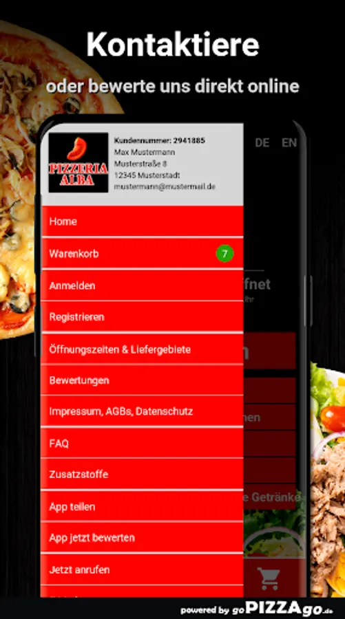 You can order and pay online from a large selection of delicacies from our delivery service Pizzeria Alba. We have 84 delicacies, of course. Our 7 top hits Pizzeria Alba is open at the following times