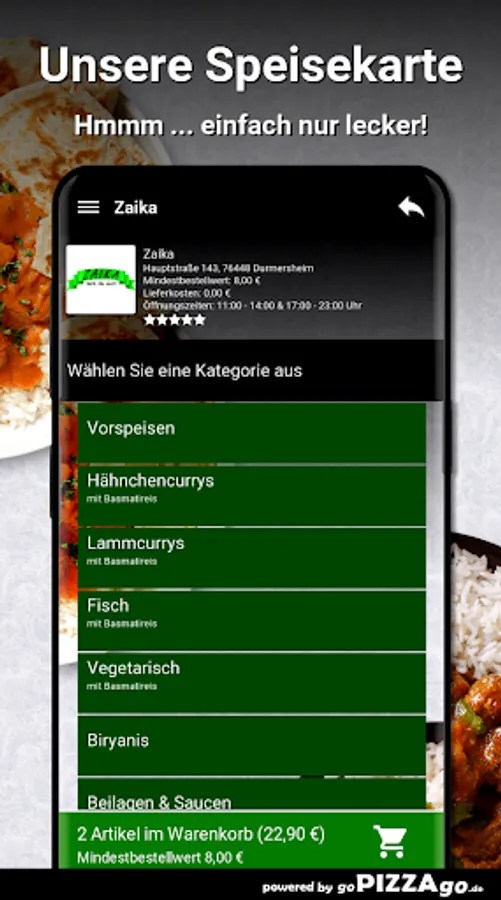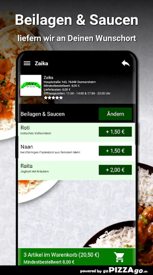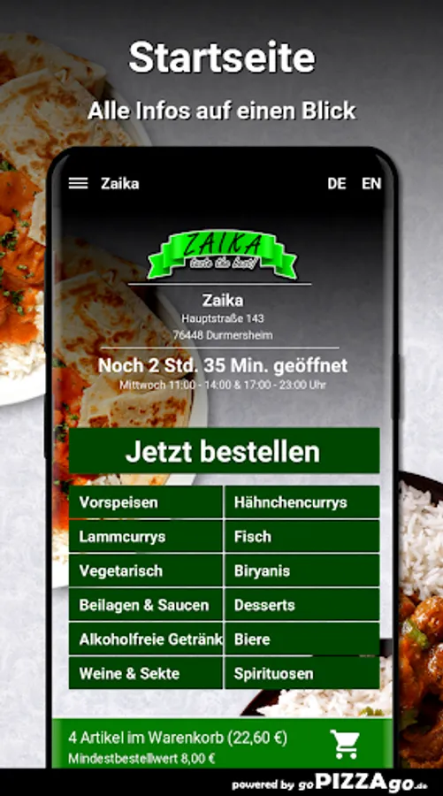 Welcome to Zaika in Durmersheim.Zaika - Al Forno, order finger food online.
