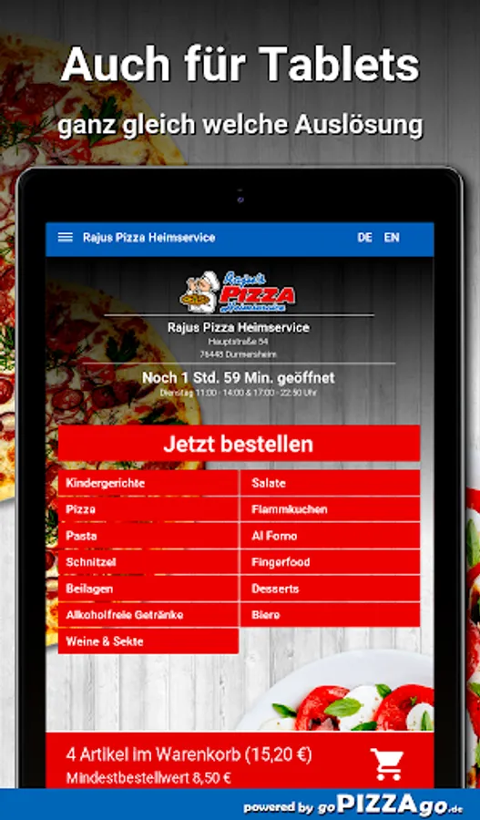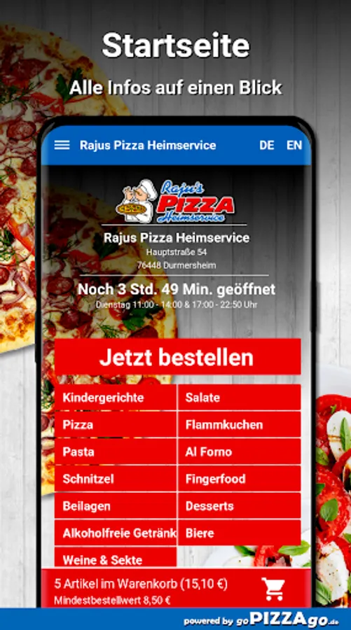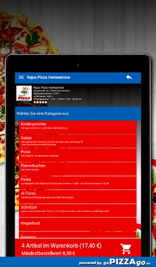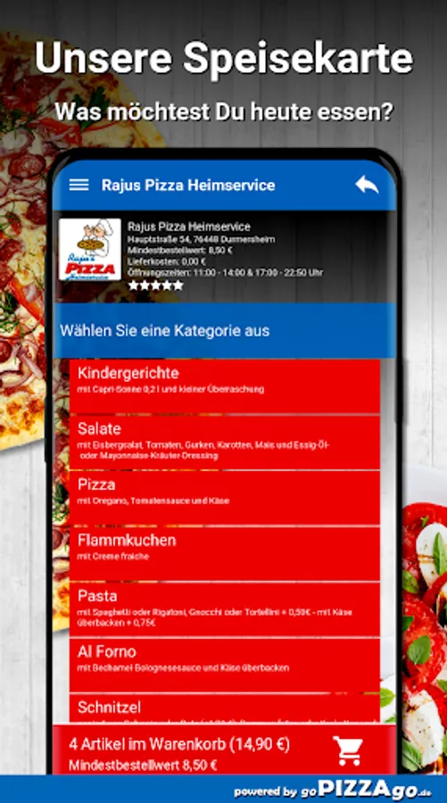 Rajus Pizza Heimservice in Durmersheim - we deliver your delicacies quickly! We have schnitzel, Al Forno, finger food, pasta, pizza, tarte flambée in the office or at home to order online.