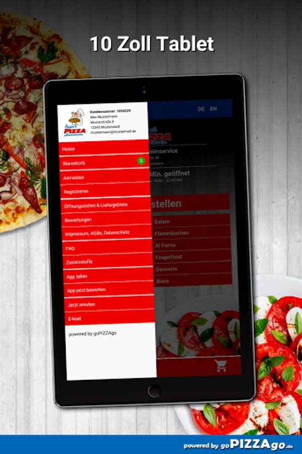 You can order and pay for many feasts online from us. Our menu has 98 fresh dishes such as Flammkuchen Extra, Pizza la Rustica, Cannelloni and Pizza Vegetariana for 8.40 EUR. For dessert we recommend spaghetti ice cream, coconut ice cream, orange ice cream. The kids can choose from numerous dishes such as 6 kids chicken nuggets for € 6.20, kids spaghetti Bolognese for € 6.20, kids pizza Nutella for EUR 6.20. The delicious top sellers when we deliver your food