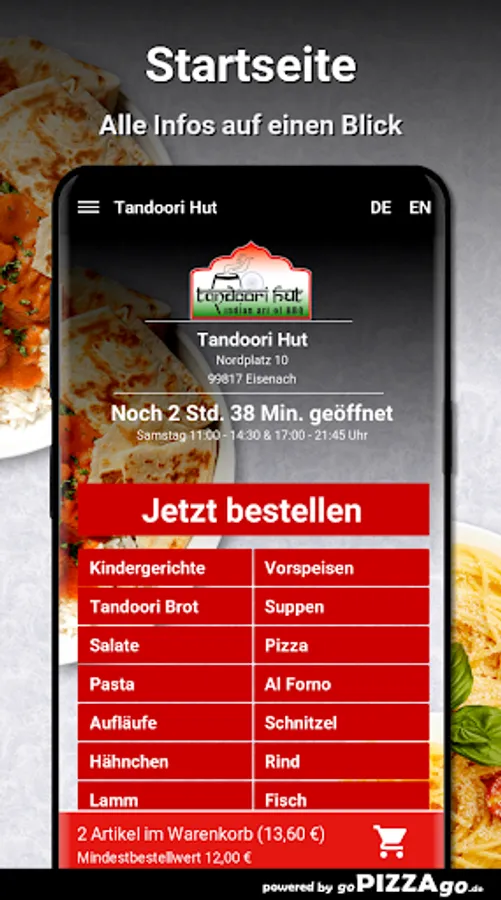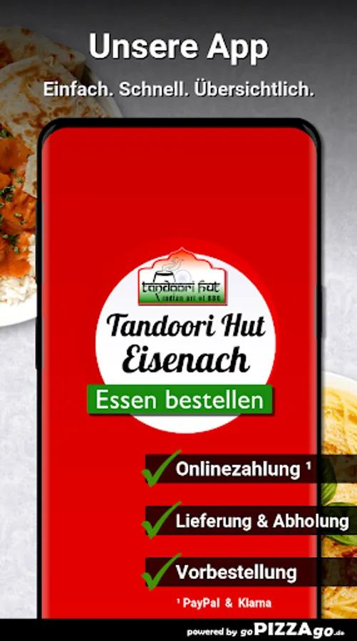 You can simply order deliciously prepared food from our delivery service Tandoori Hut and have it delivered immediately. Choose from more than 126 foods or drinks. The offspring can choose between numerous delicious dishes such as 9 fish fingers, 9 chicken chips.What do you like to order? With us you can conveniently and securely order online at these times