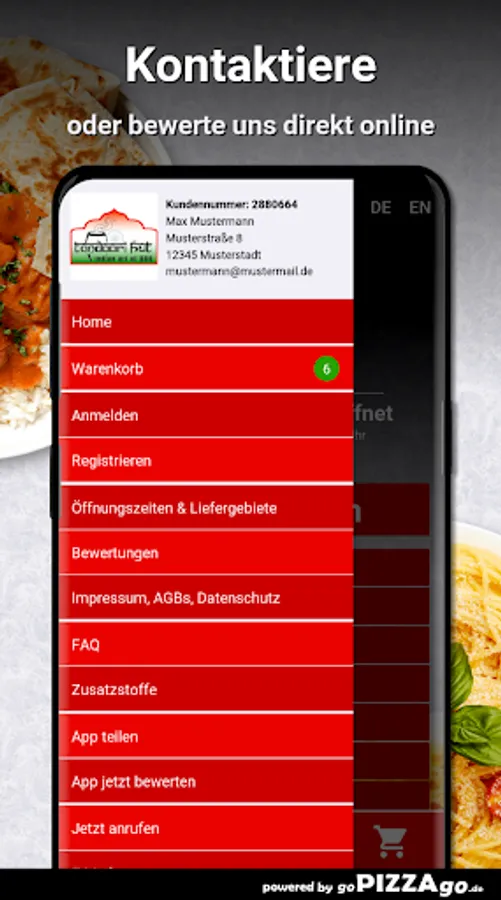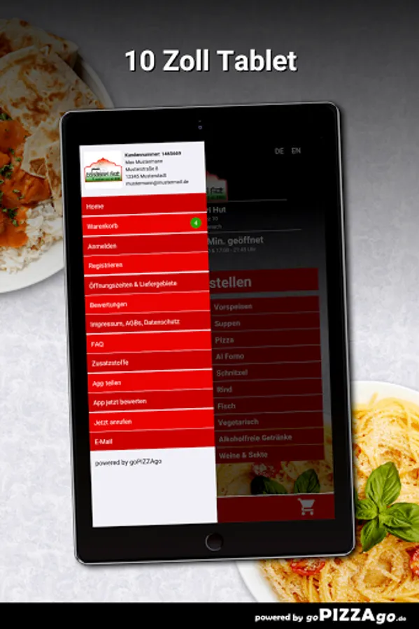 The typical culinary art of Italy ... with the delivery service Tandoori HutTotal, we of course also offer wholesome feasts from the delicious cuisine of Italy online. Really good pasta Arrabiata al Forno will be brought to your home or office for € 7.00-9.40, Pasta alla Panna al Forno for a fabulous € 7.00 to 9.40 to your current location, Pizza Salmone will be available to you Residence delivered for from 6.80-8.00 euros, pasta ham and cream sauce al Forno is delivered at a price of 7.40-9.40 €, Tandoori Hut has pizza Quattro Formaggi for only 6.90 - 7.00 90 €, Pasta alla Panna, delicious pizza salami is available from Tandoori Hut for only 5.50-6.50 € or Pizza Pomodori is available from Tandoori Hut for only 6.50-7.50 €.
