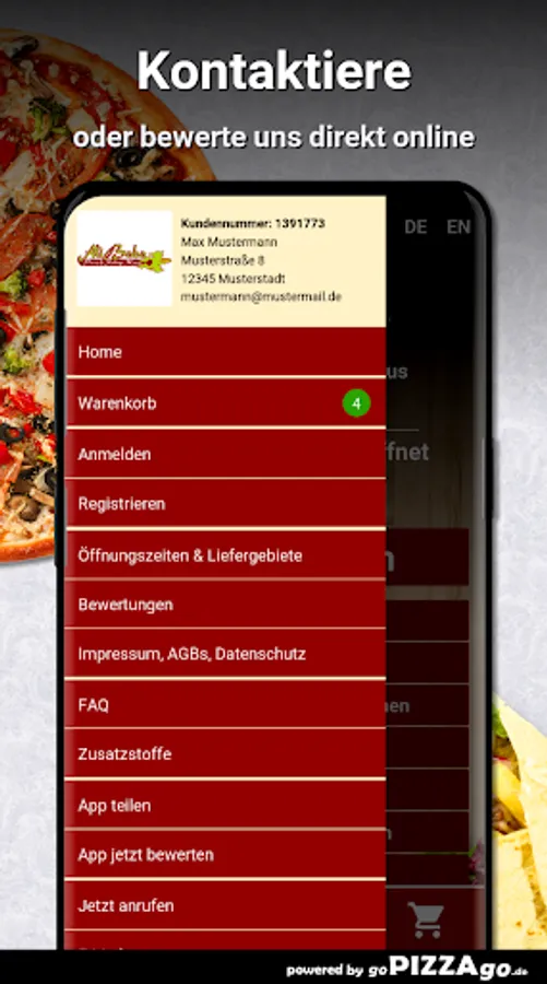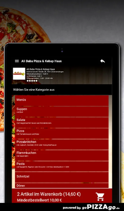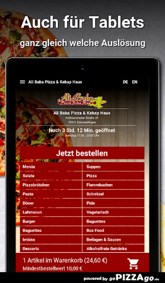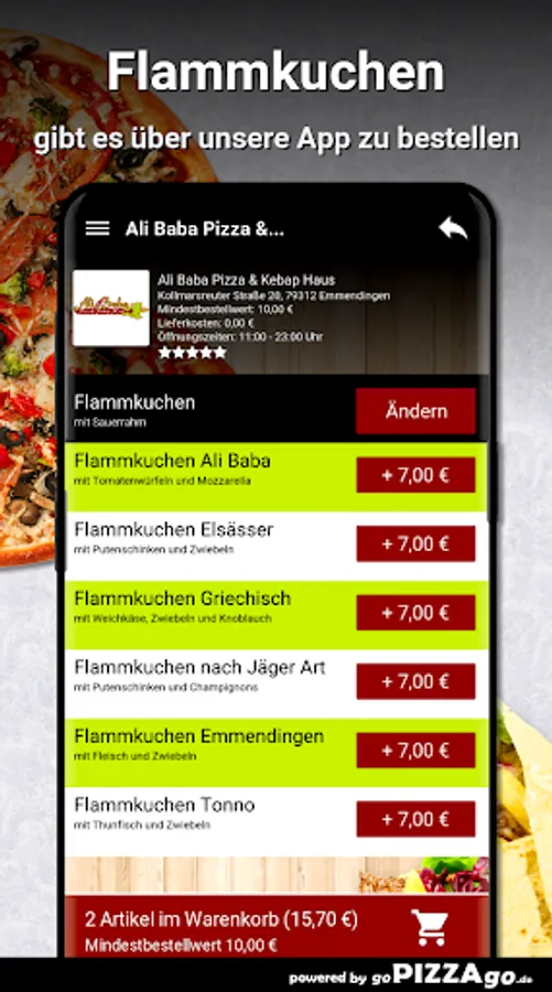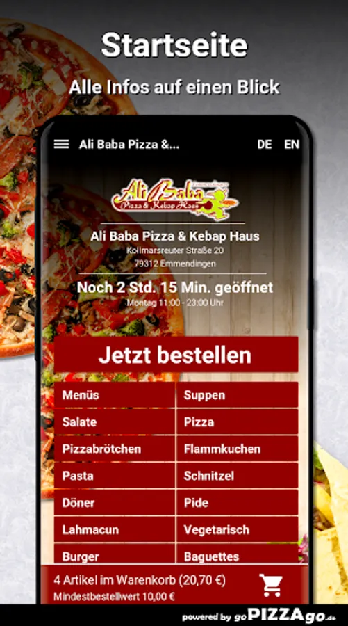 You can easily order delicious, tasty food online from our pizza service on this website. What do we cook delicious? 232 fresh dishes, including Pizza Japan, Flammkuchen Emmendingen, Big Döner XXL, Flammkuchen Greek or perhaps Baguette Chili Cheese for 7.00 euros. Customers find the following specialties the best When can I order?