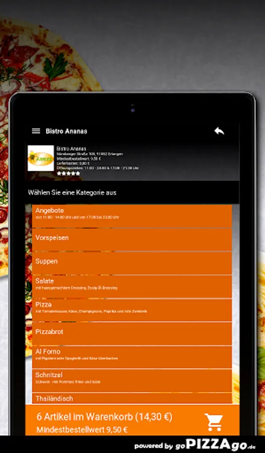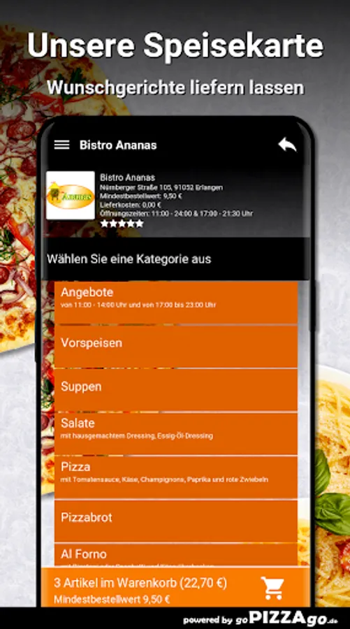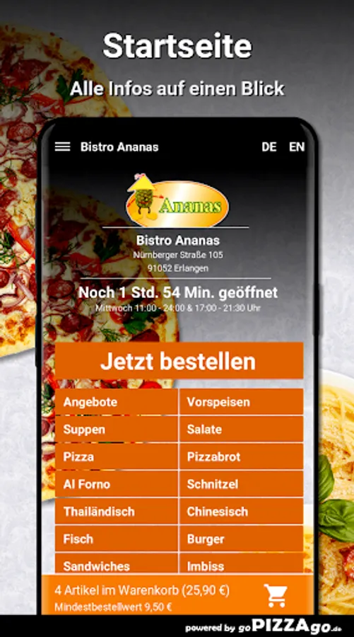Welcome to Bistro Ananas - your delivery service for Al Forno, schnitzel, burger Are you hungry for burgers, salads, starters, schnitzel, snacks to order online?