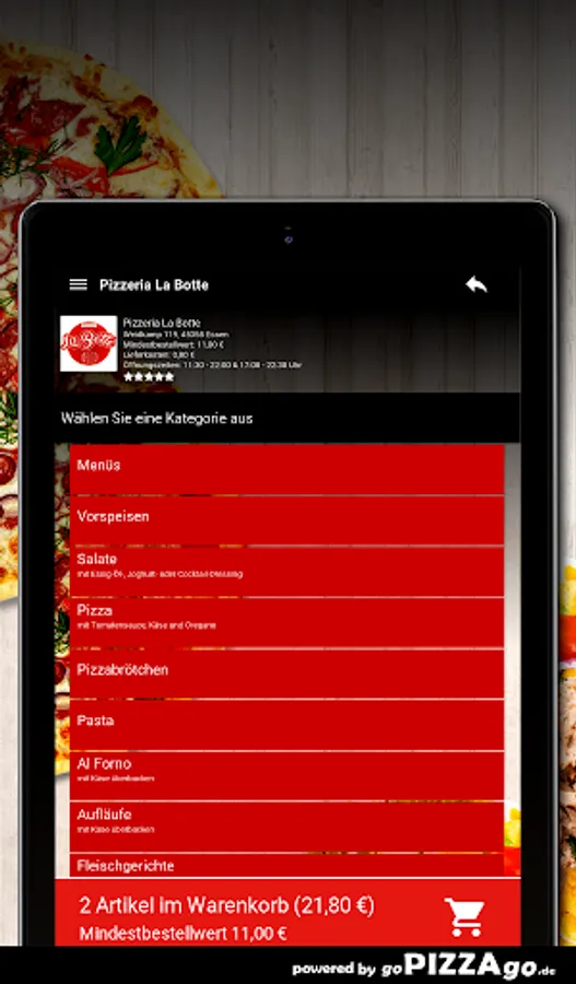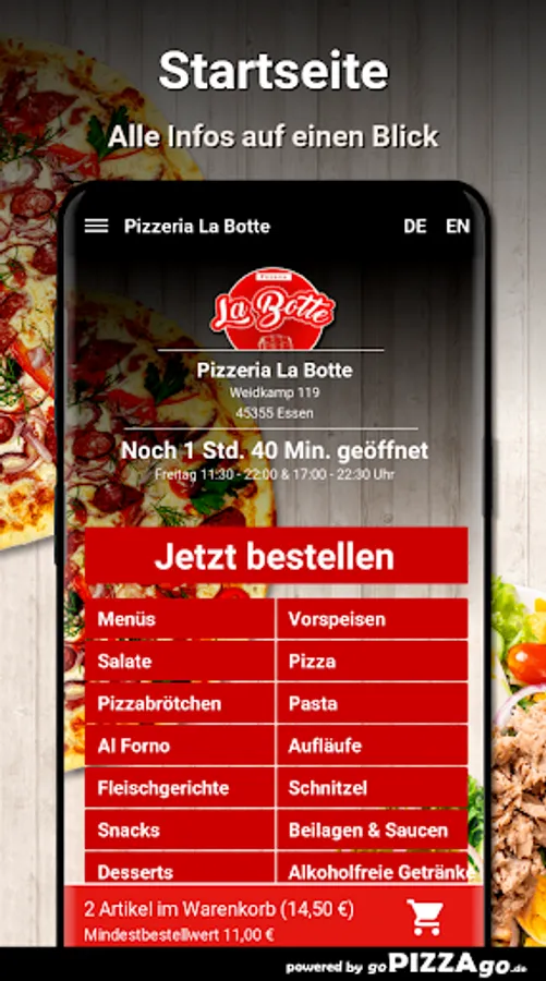 Welcome to Pizzeria La Botte in Essen Do you fancy meat dishes, starters, Al Forno, pizza to order online?
