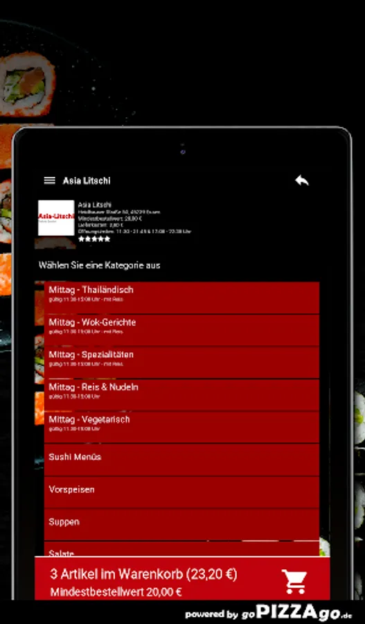 Hello & warmly welcome to our delivery service Asia Lychee At Asia Lychee you can safely order lunch - vegetarian, temaki, ikura, evening - Thai, sushi menus, inside out, lunch - rice & noodles here and have them delivered!