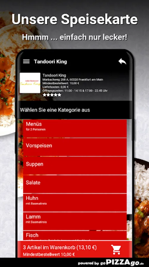 Welcome to Tandoori King in Frankfurt am Main Tandoori King - order vegan & Ayurvedic, chicken, soups online.