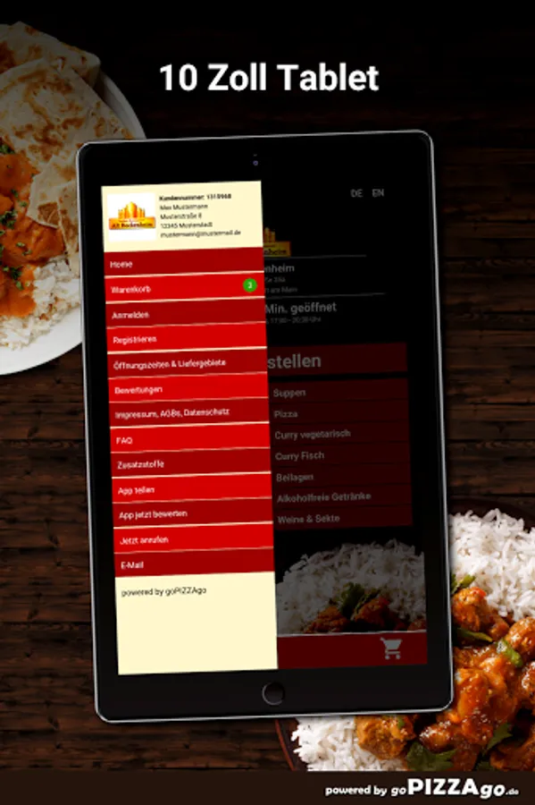 You can order a large selection of freshly prepared specialties from our pizza delivery service and have them delivered to your office or home. What do we have on offer? 124 delicious dishes (Naan, Vegetable Soup, Tangri Kebab, Chicken Madras, Insalata Venere, Cucumber Salad or Egg Curry for € 9.90). The top 7 hits with usOur opening times