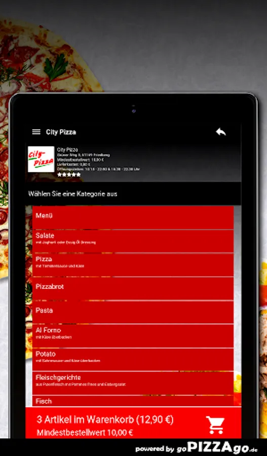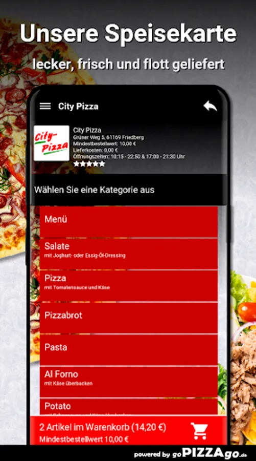 You can easily order a variety of fine meals from our City Pizza delivery service here. What do we cook delicious? 137 delicacies: Wiener-style schnitzel, chicken salad, chicken burger, Insalata di Pomodori for € 2.50. What do customers find most delicious? Our delivery times are