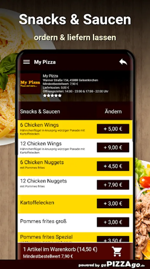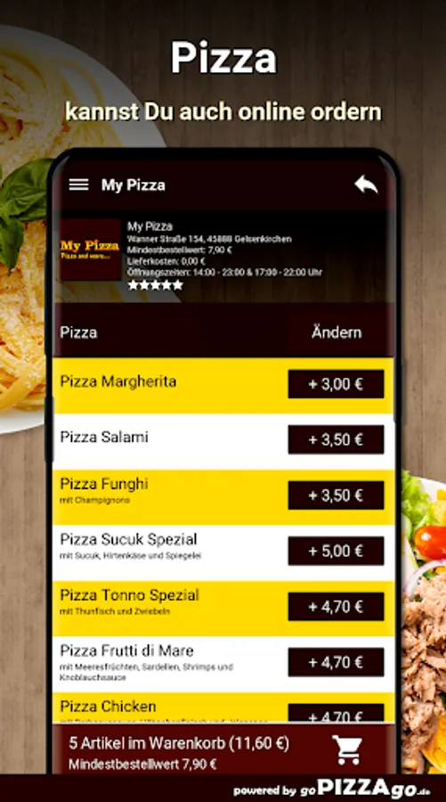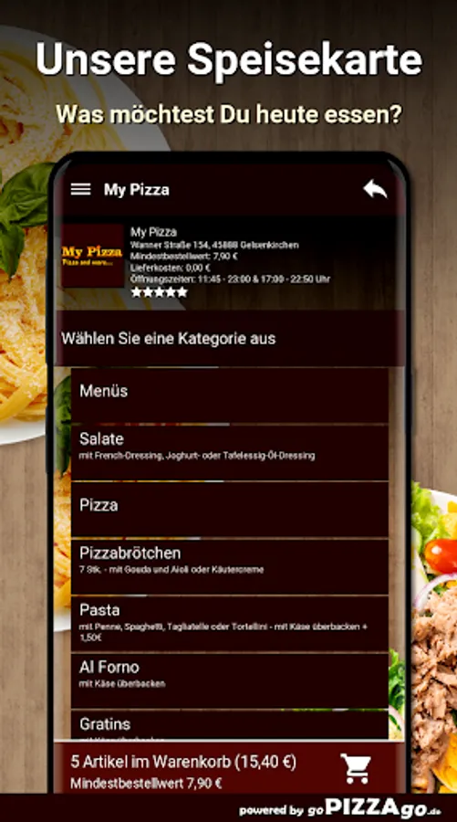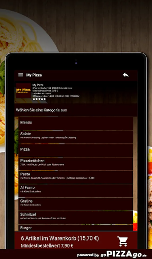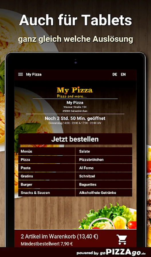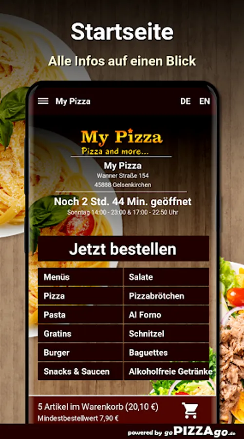 You can safely order freshly prepared dishes from our My Pizza pizza service here. Choose from more than 119 dishes, including chicken burgers, hamburger sauce, pizza dilo, lasagne al forno, pizza vegetaria or perhaps herb cream for € 0.90. Our bestsellersWe deliver at the following times