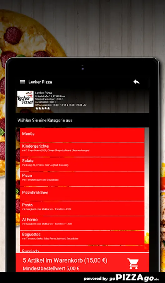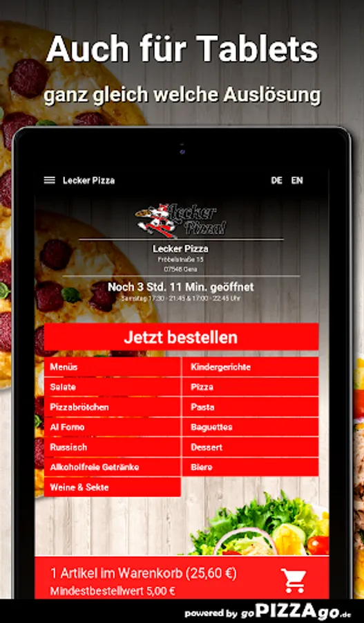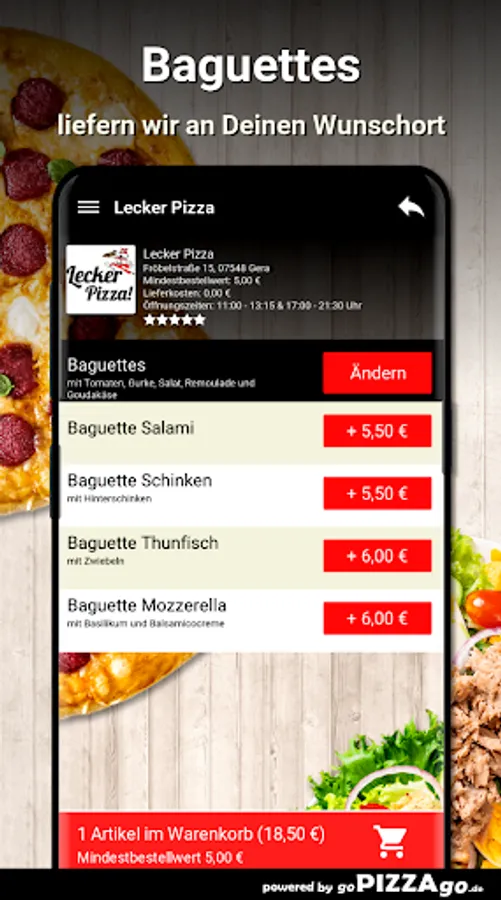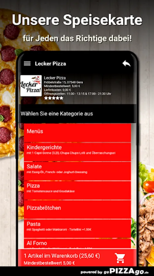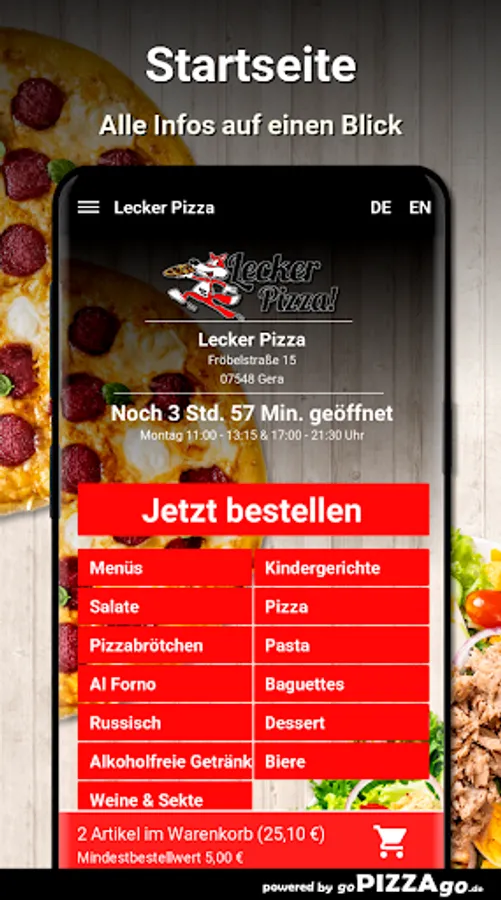 Welcome to Lecker Pizza in Gera At Lecker Pizza you can get pizza, pizza rolls, salads, baguettes, al forno, pasta!