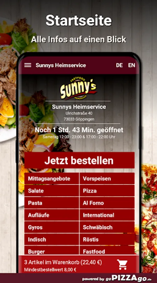 Sunnys Heimservice - your delivery service in Göppingen At Sunnys Heimservice you can definitely order starters, international, hash browns, pizza and burgers online and have them delivered!