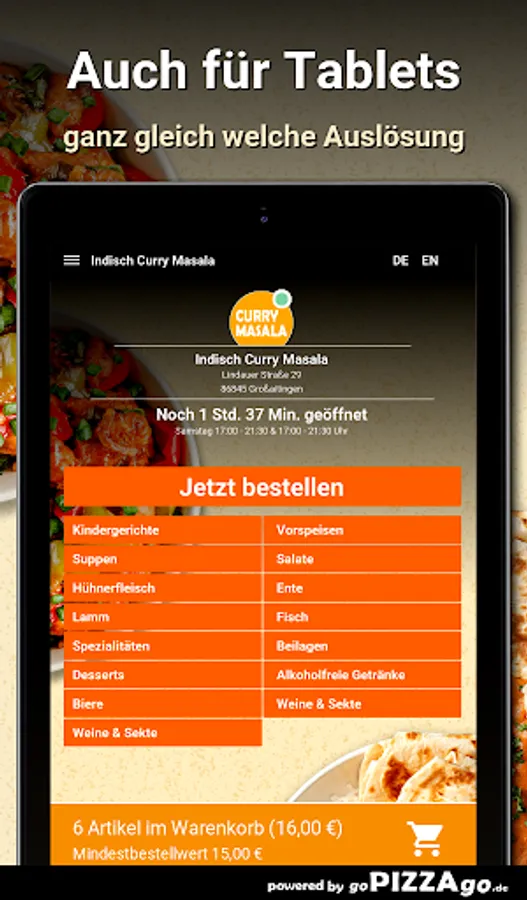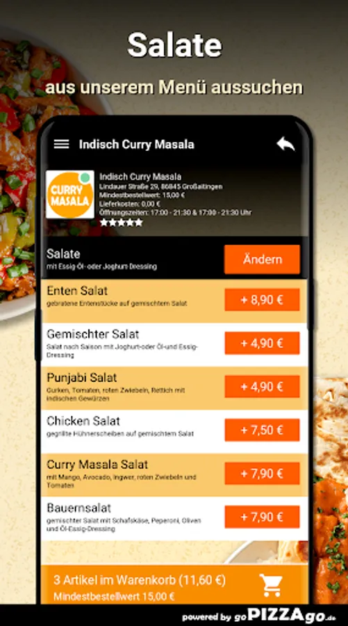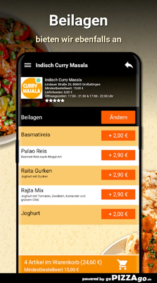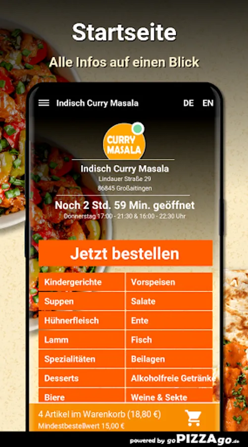Cravings for Indian? How about. 54 Indian meals can be easily ordered online at Indian Curry Masala. Chicken Tikka, Dal Soup (vegan) (3.90 €), Fish Pakoras, Butter Nan can be ordered for 3.40 €, excellent Makhni Dal is available online for only 9.50 €, Chicken Tikka Masala, Mixed Pakoras you get for 6.90 €. Your Indian Curry Masala Team Großaitingen