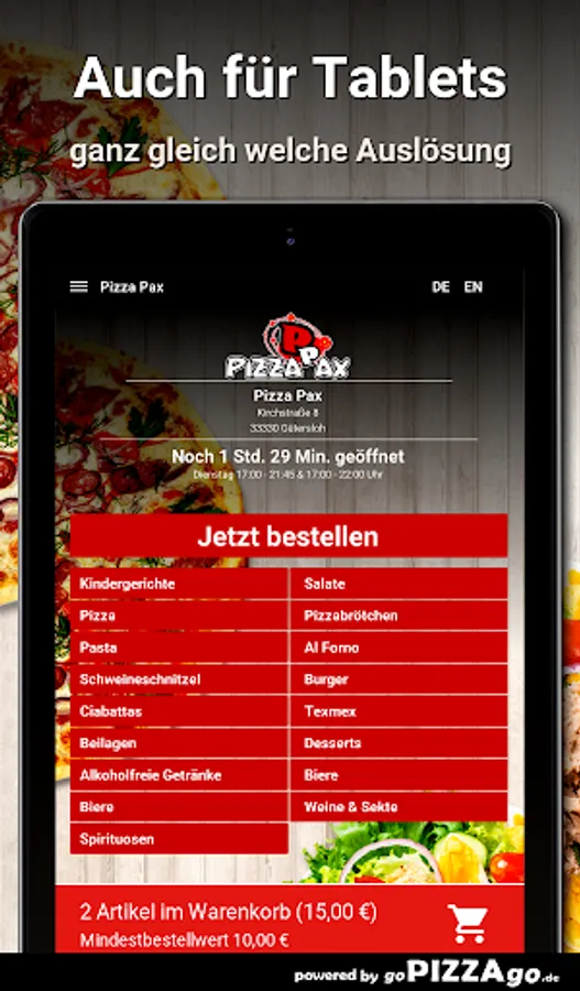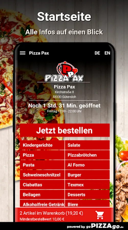 Order food online at Pizza Pax Gütersloh Do you like delicious salads, pizza, burgers, Texmex, Ciabattas, Al Forno, pasta, pizza rolls to order online?