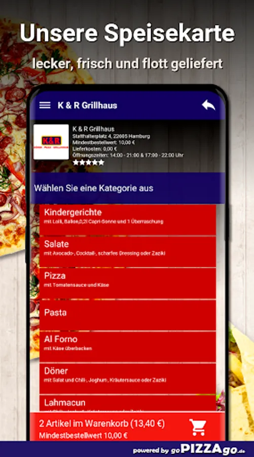 Order food online at K & R Grillhaus At K & R Grillhaus you can order doner kebabs, pizza, lahmacun, from the grill, pide and pasta.