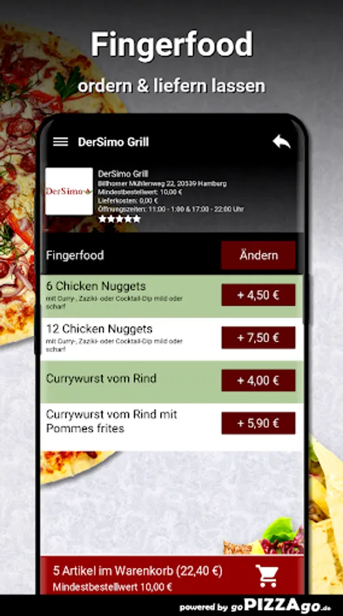 Welcome to DerSimo Grill in Hamburg. Are you hungry for vegetarian, breakfast, kebab, finger food, soups, pizza, durum, pasta?