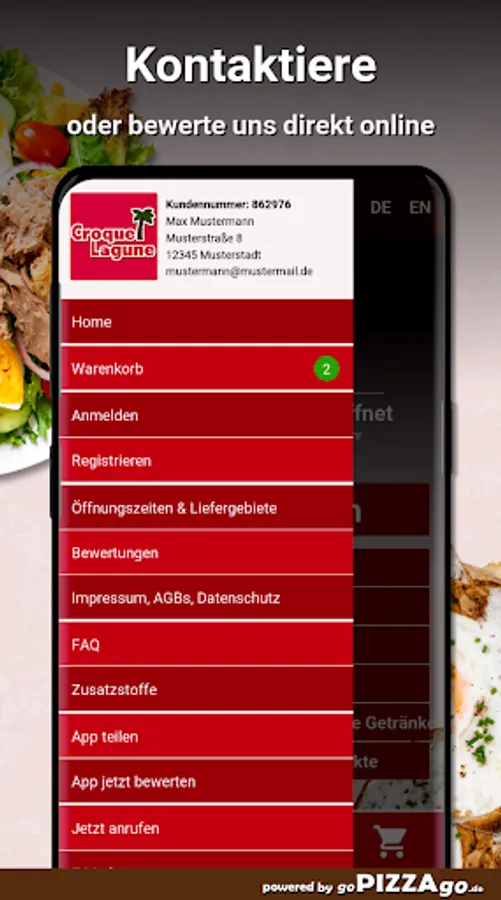 Of course, you can order and pay for a wide range of delicious dishes from our Croque Lagune delivery service in our online shop. Our online offer has 84 varied dishes, including giant currywurst, croque cucumber-egg, salad mozzarella, crepe with amaretto, croque ham, ketchup, croque tomato. What are our top sellers Our delivery times