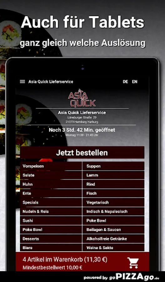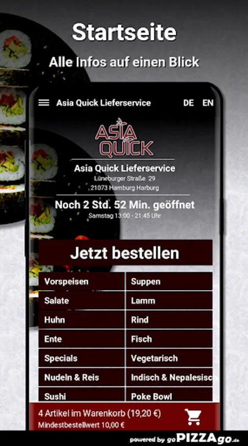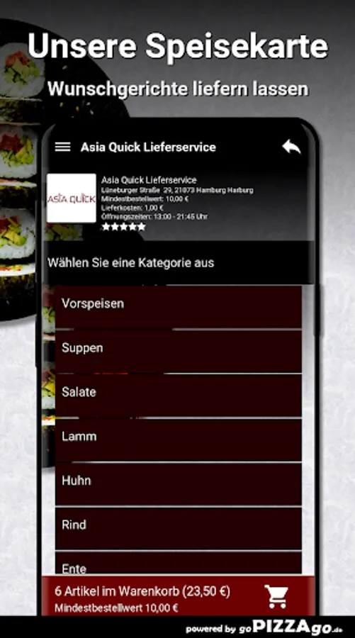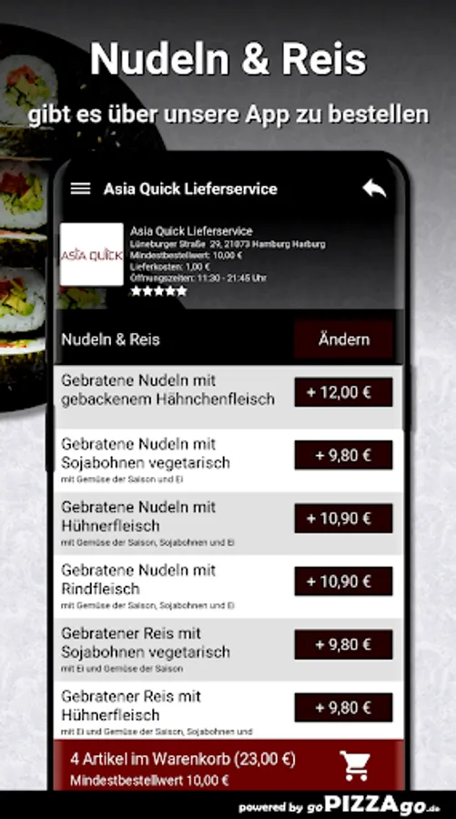 Order food online at Asia Quick Lieferservice Hamburg HarburgWith us you can order sushi, soups, noodles & rice, chicken online!