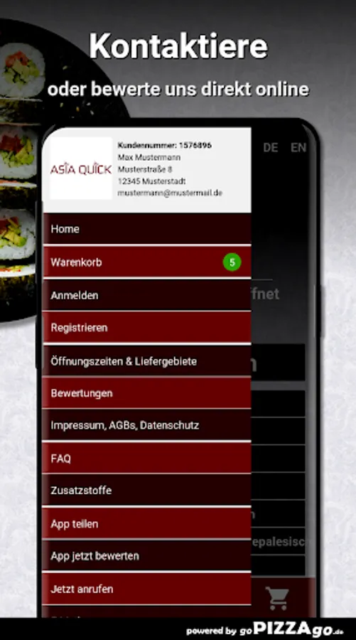You can also easily order many meals from our Asia Quick delivery service and have them delivered quickly. We offer you more than 199 delicious dishes. You can order Asia Quick Lieferservice Top-7essen at these times