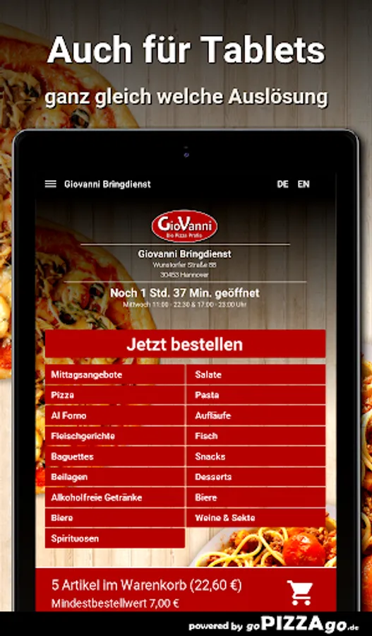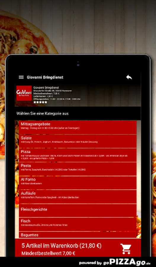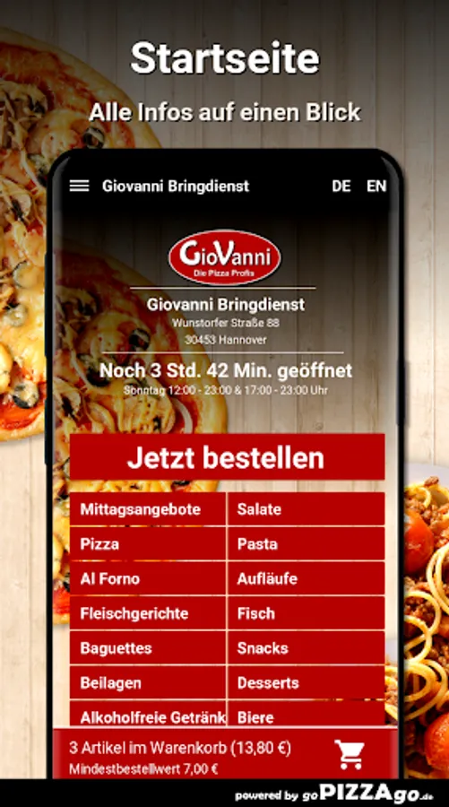 Giovanni Bringdienst - Your delivery service in Hanover Are you hungry for fish, casseroles, snacks, pizza, meat dishes today?