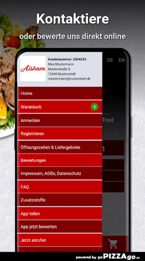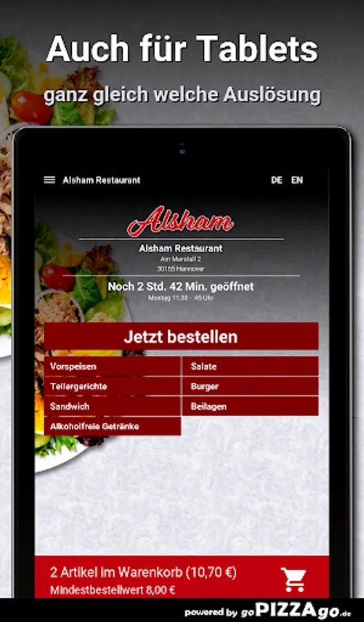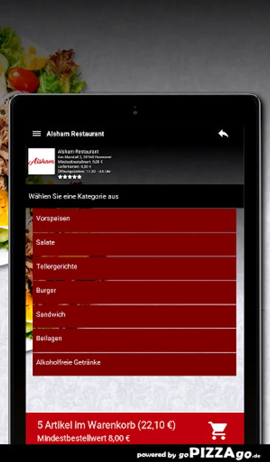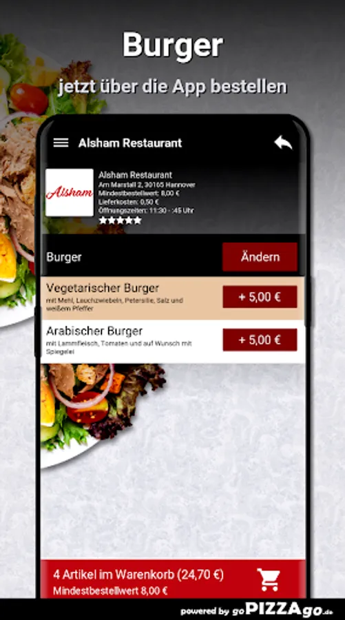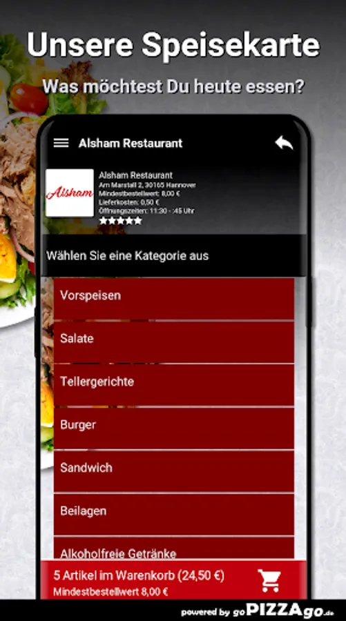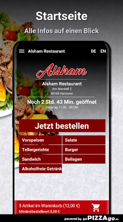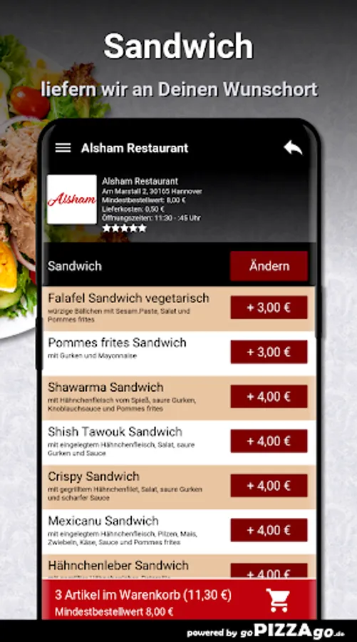 Order food online at Alsham Restaurant HannoverWith us you get: sandwiches, starters, plates, burgers, salads to order and have them brought to your own four walls.