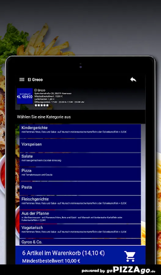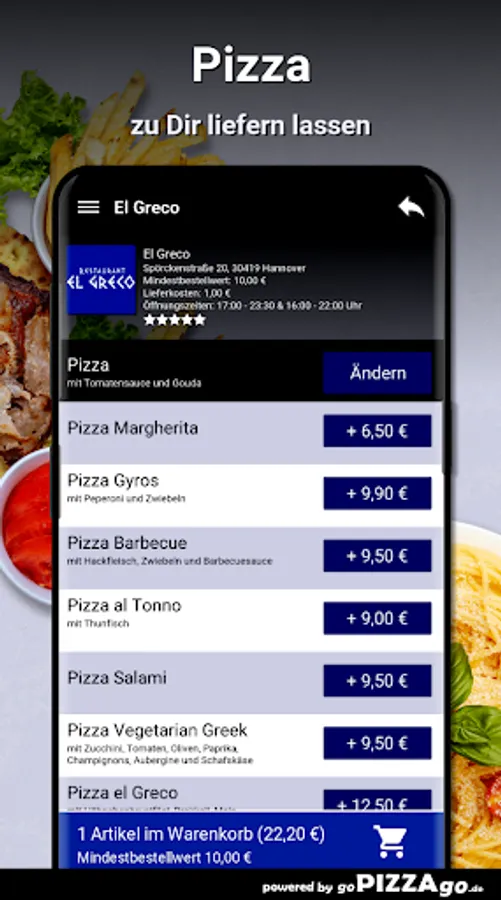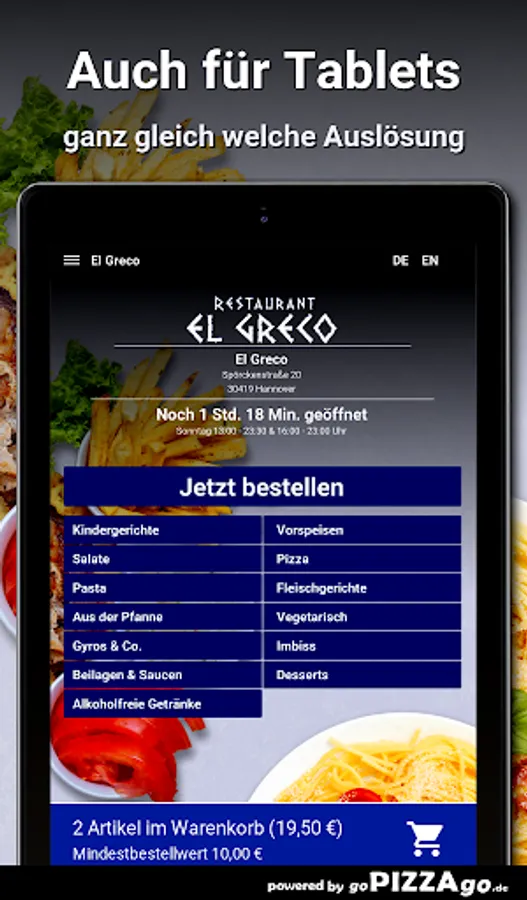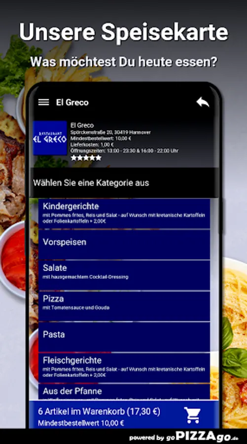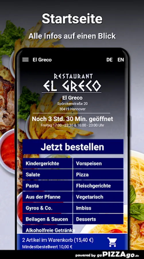 Welcome to El Greco in Hanover. We deliver vegetarian, starters, pizza, pasta, from the pan.