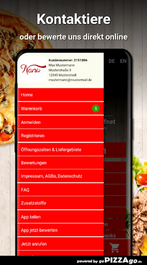 Whether pasta, pizza or meat feast at Bistrorante Nanu Eat like mom in Italy! You can simply have 61 ingenious Italian dishes brought to you at Bistrorante Nanu. Really good Pizza Cuban 6.00-18.00 €, Pizza Rucola is brought to you for 6.00-17 €, Pasta Gorgonzola can be ordered for 8.40 € and Pizza Sucuk is delivered to you for 6.00-17.00 €.