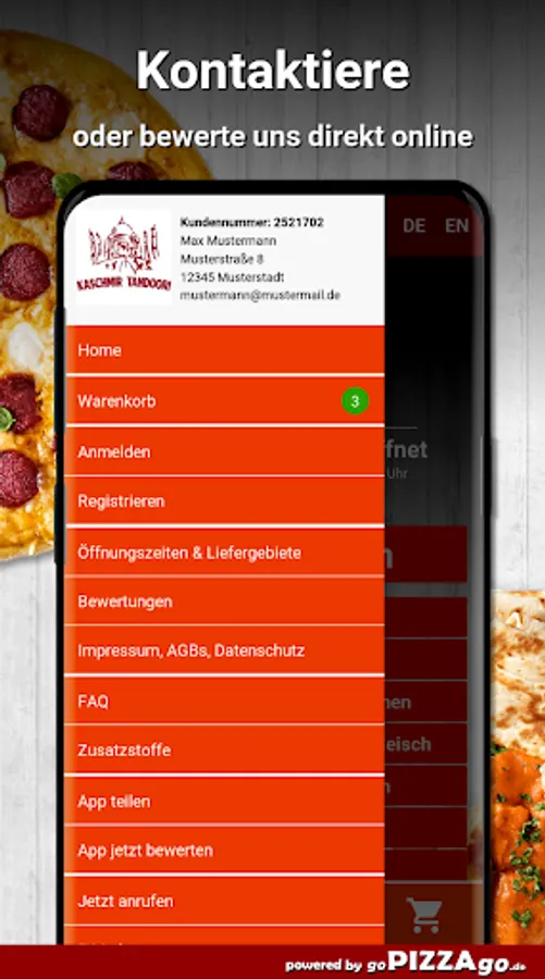You can order an unbelievable selection of delicious dishes from our easy online pizza service. You can expect a range of 114 feasts such as 6 pizza rolls, cheese pep, kumba korma, 12 chicken wings, pakoras samosa or aubergine curry for € 7.00. We continue to deliver non-alcoholic beverages such as Coca-Cola, Sprite, Fanta, Mango Lassi. We will be happy to order online! When can I order Tandoori 1 from Kashmir?