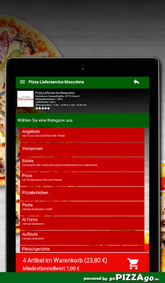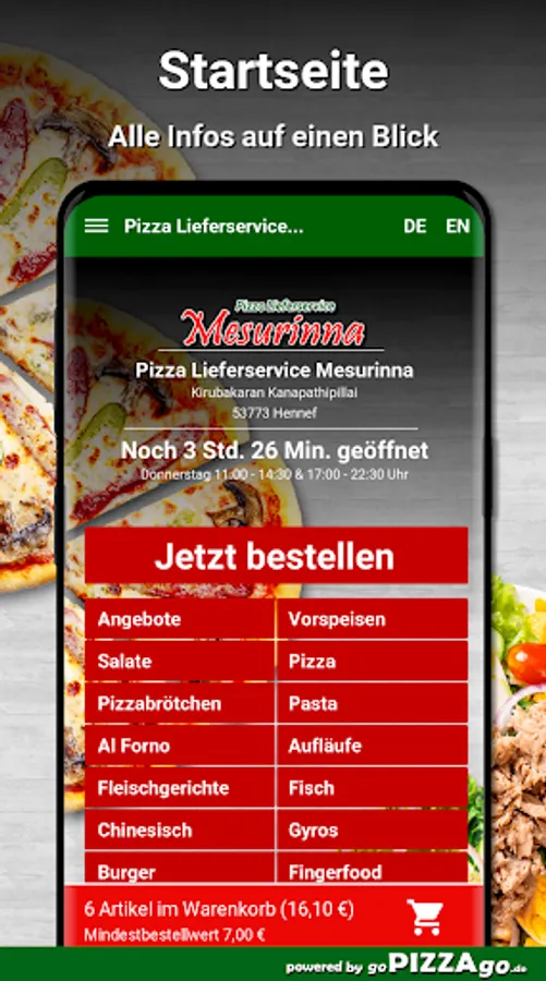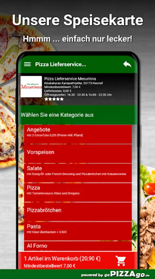 Order burgers, starters, gyros online at Pizza Delivery Service Mesurinna Are you hungry for fish, finger food, meat dishes to order online again?