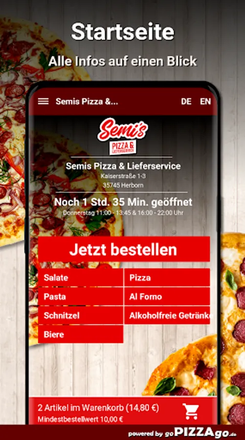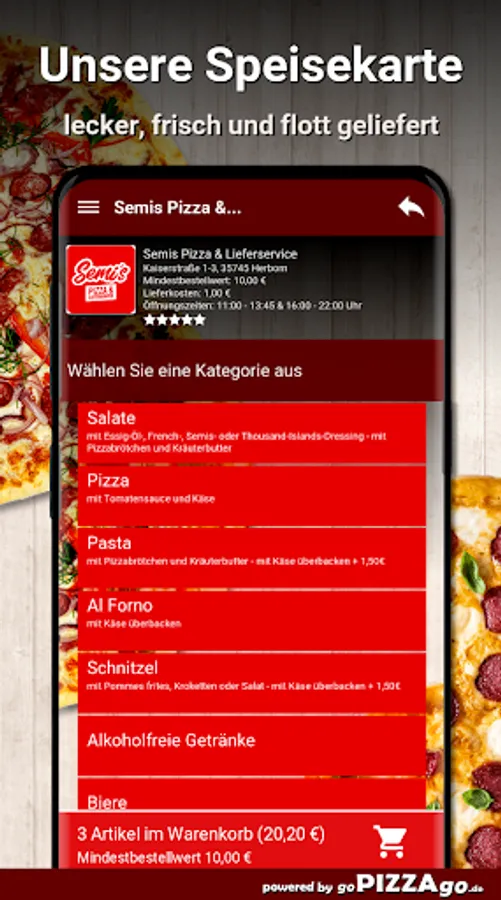 Order food online at Semis Pizza & Delivery Service Are you hungry for delicious salads, Al Forno, pizza, schnitzel, pasta to order here and have it delivered?