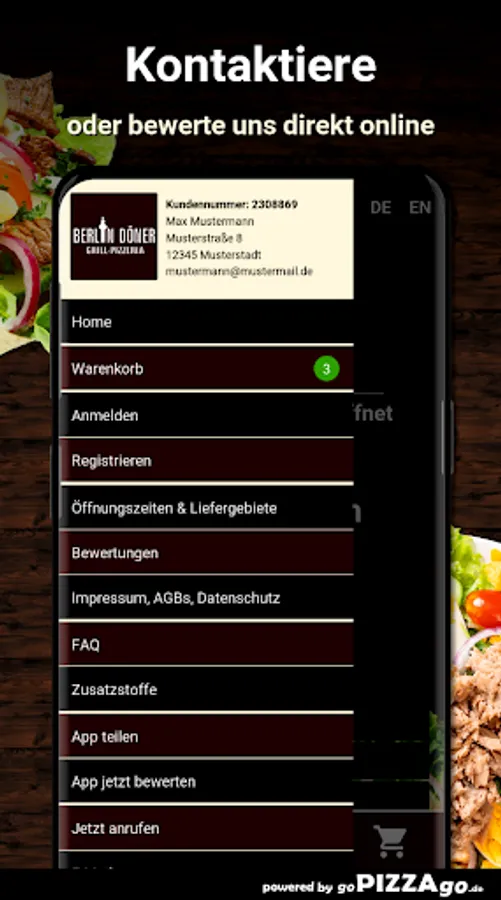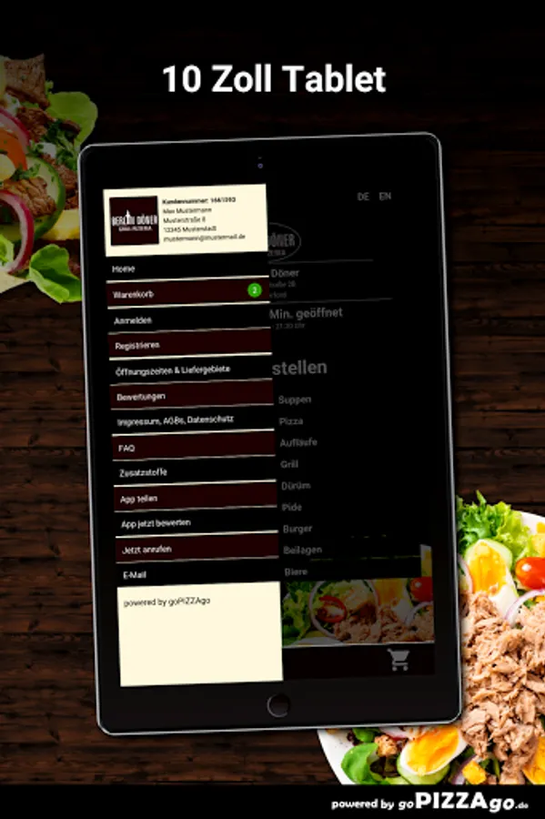 Whether hot pizza or the tastiest pasta, eat today Italian food from By Berlin Döner, we also have thirteen delicious Italian dishes on offer conveniently online with our delivery service. You can order pizza shrimps for 7.40 €, the delivery service brings you pizza turkey ham at a price of 5.40 € directly to your doorstep, pizza Hawaii (6.40 €). Pizza Sucuk € 7.40 or the aromatic, tasty Pizza Calzone Sucuk is available for € 7.90.
