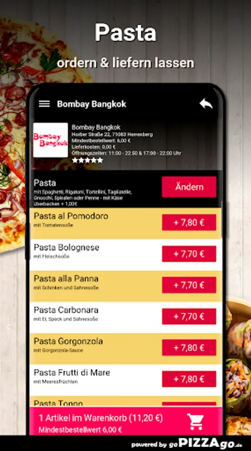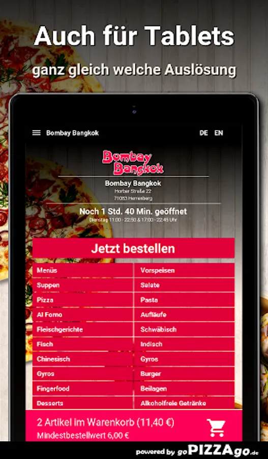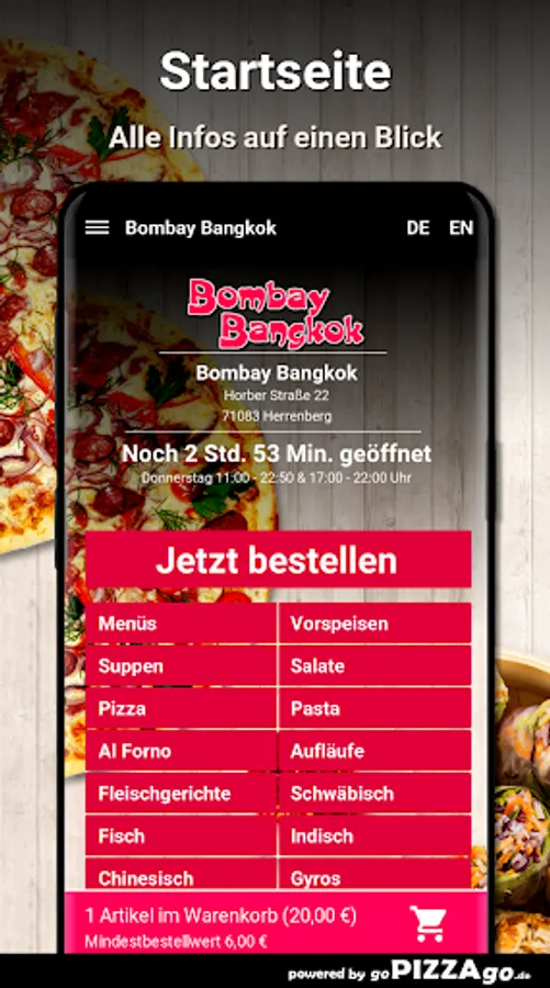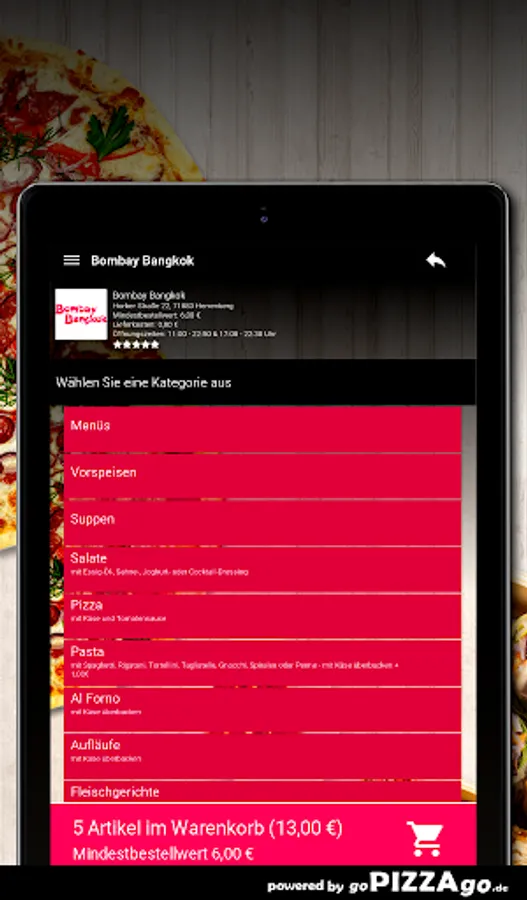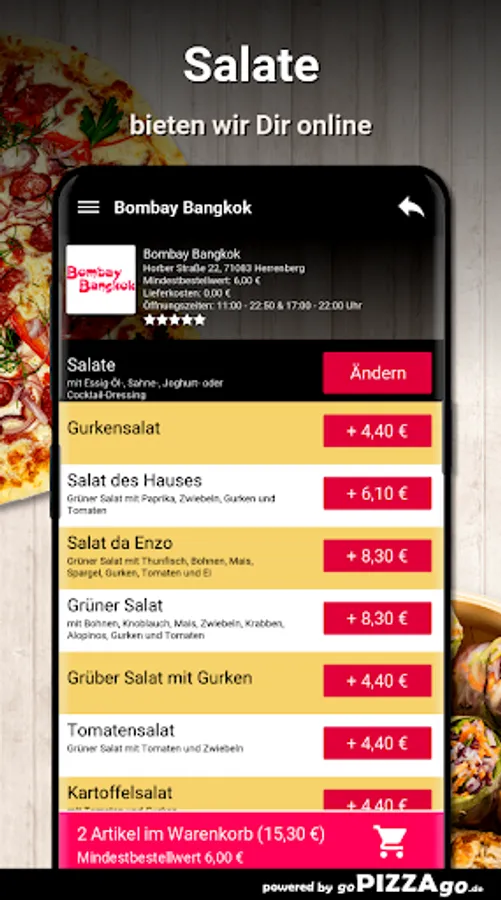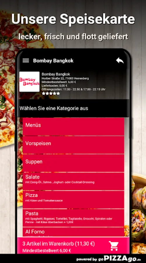 Order food online at Bombay Bangkok HerrenbergWe have of course pizza, soups, salads, starters, finger food that can be easily ordered and delivered quickly.