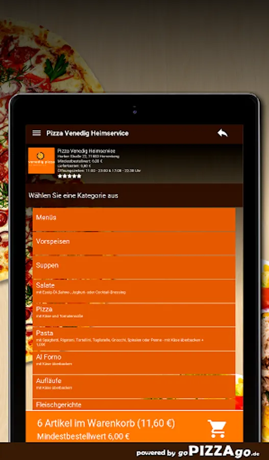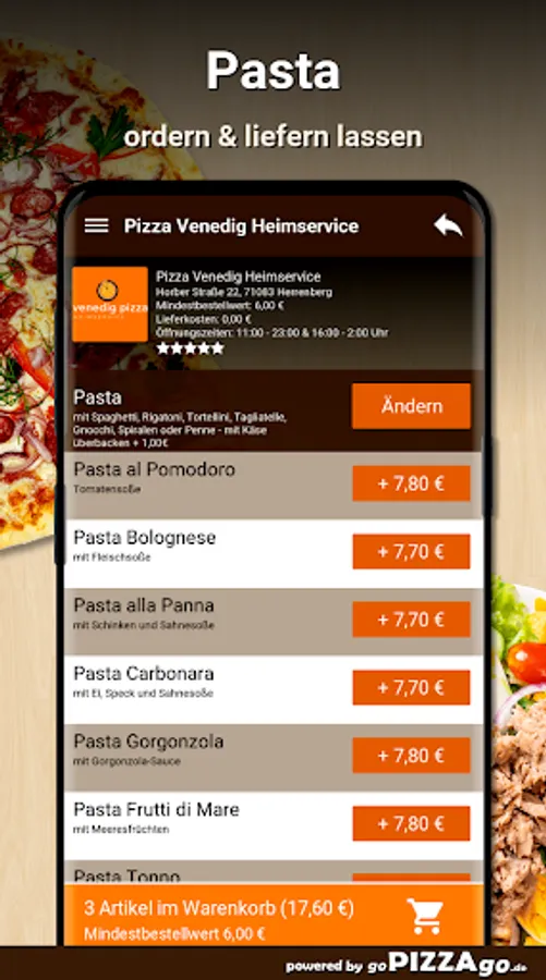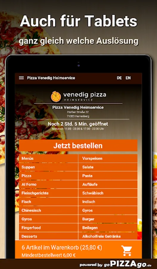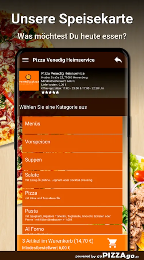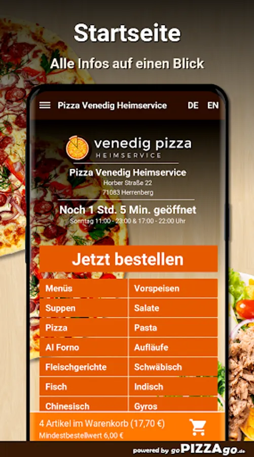 Welcome to Pizza Venice Home Service in Herrenberg You can get gyros, finger food, fish, Swabian, pizza, Al Forno, meat dishes, starters at Pizza Venice home service.