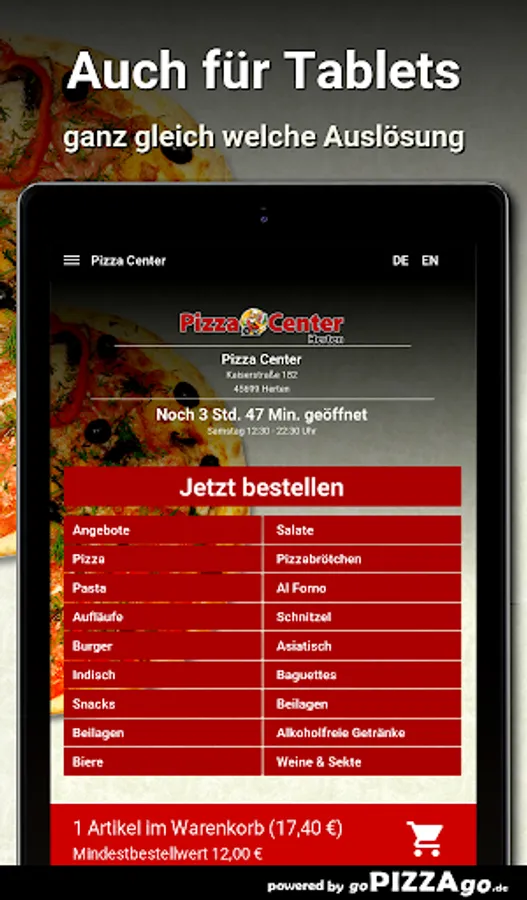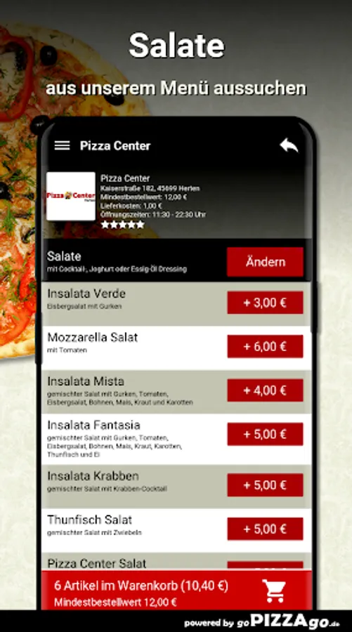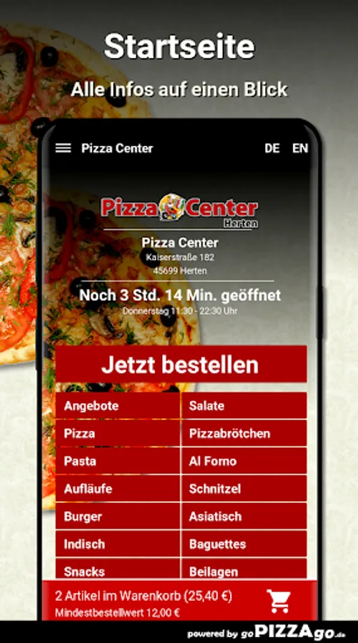 Nothing easier than that: order pizzas in Pizza Center Herten..45 pizzas you can order with the family at Pizza Center easily here online. You can get Pizza Napoli delivered to your place of residence for €5.50-10.50.