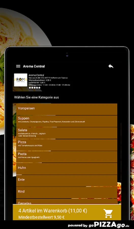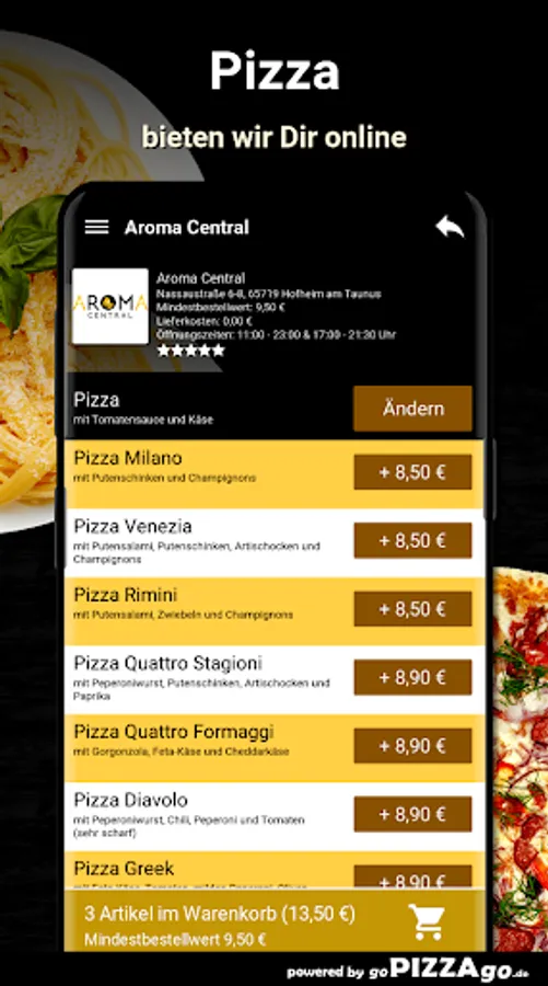 Welcome to Aroma Central in Hofheim am TaunusYou have a desire for pizza, prawns to order conveniently online and have them brought or picked up?