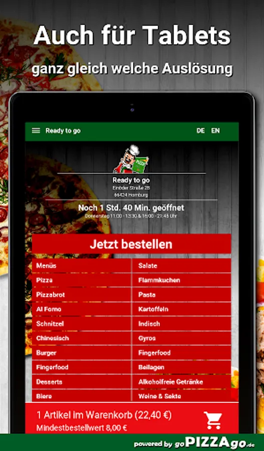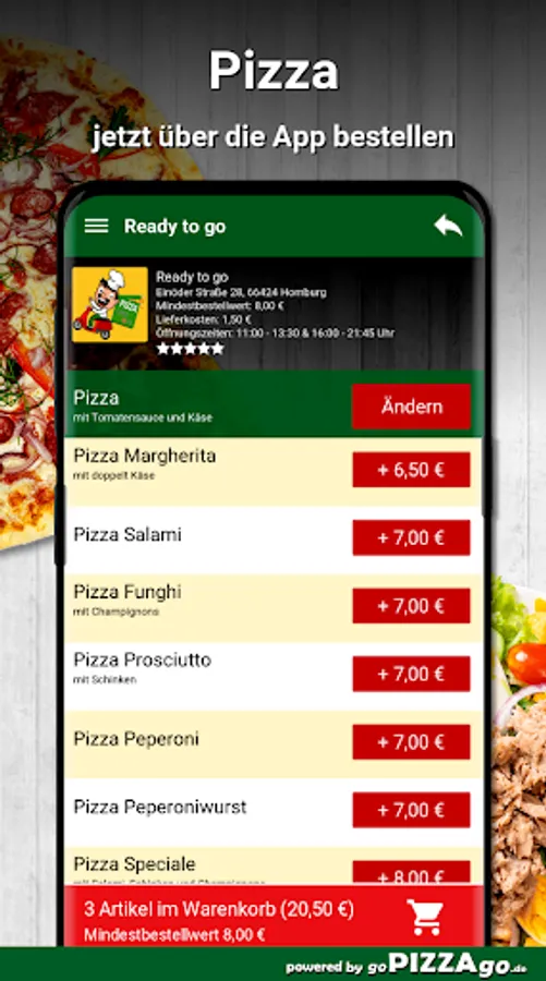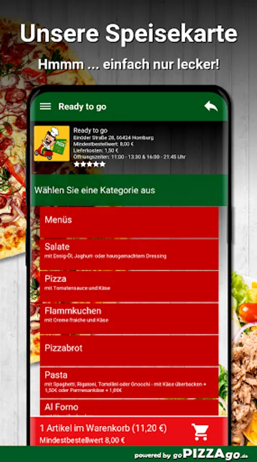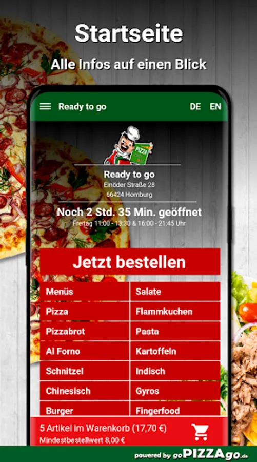Welcome to Ready to go in Homburg. Would you like to order pizza bread, gyros in Homburg and have them brought?