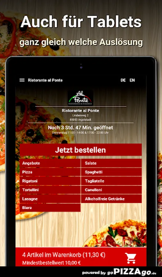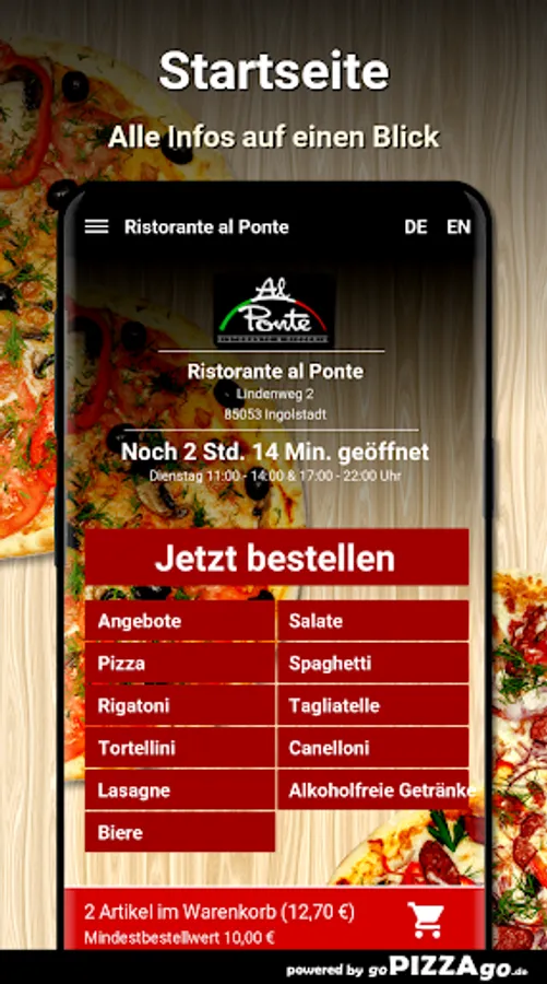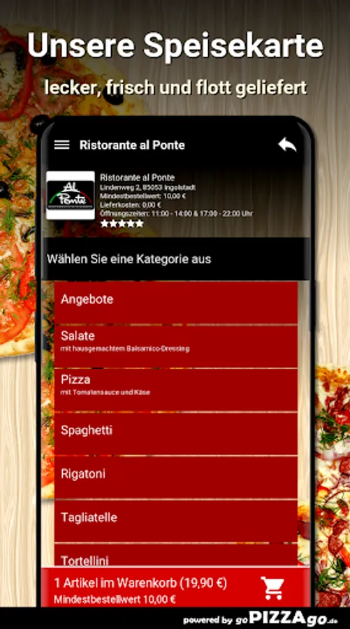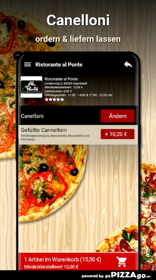 Ristorante al Ponte delivers your fresh dishes to the following districts ... we deliver to Ringsee, Kothau, Rothenturm, community Großmehring, district south-east, Niederfeld, Mailing, Seehof, from € 25.00 onwards Wettstetten, Lenting, Hepberg, Gaimersheim.